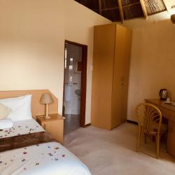 Our 44 double-single rooms inclusive ofDamside, Rondevals and Standard rooms at Khutsong Lodge offers a comfortable and cozy environment guests looking for a relaxing stay. The rooms feature a double bed, perfect for a single person or couple. The room is tastefully decorated with modern furnishings and is equipped with all the necessary amenities to ensure a comfortable stay. Guests can expect a private en-suite bathroom with toiletries and fresh towels.